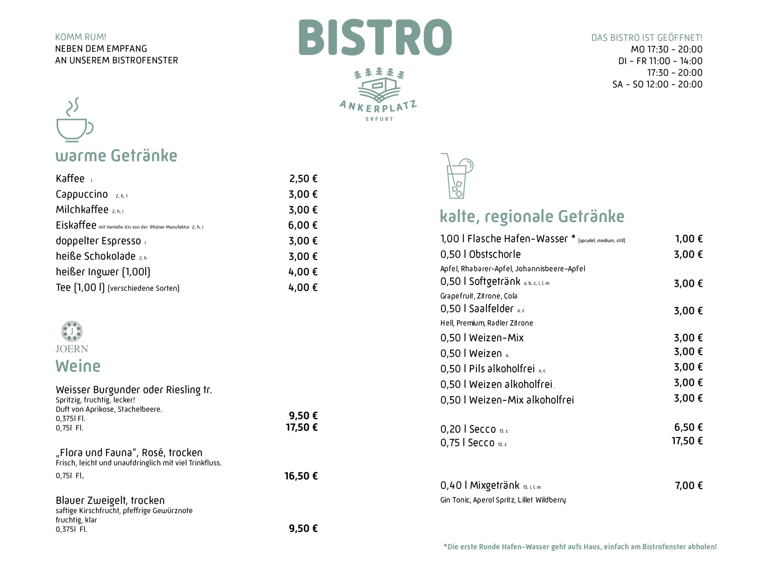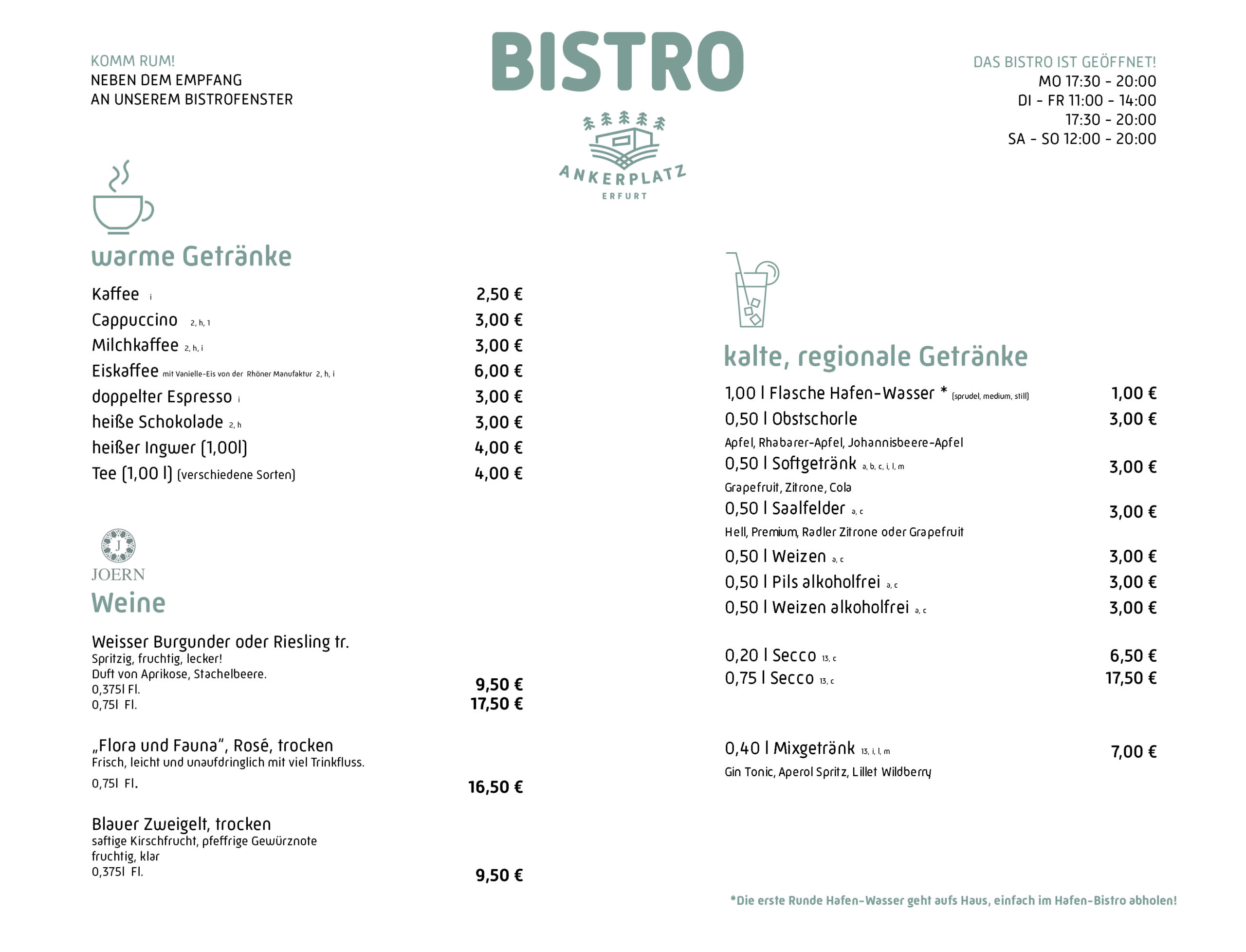 Vor Ort gibt es warme und kalte Getränke sowie Eis.